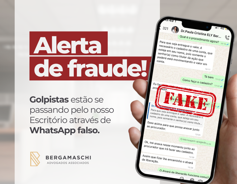 Alerta de Fraude! Criminosos se passam por advogados do Escritório Bergamaschi através de Whatsapp falso.